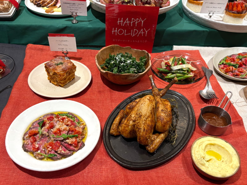 去年、特に人気が高かったのが「パーフェクト ホリデー」セット。長野県産のぎたろう軍鶏を使った「クラシックローストチキン」を主役に、霧降高原牛の「タリアータ」、ひき肉たっぷりの「ラザニア」や「アスパラガスとドライトマトのサラダ」「ケールとキヌアのサラダ」が入った、4名分のボリューム満点セットです。
