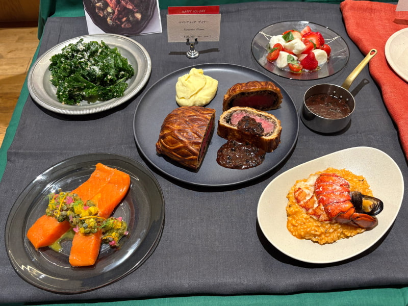 サイドには「オマール海老とムール貝のリゾット」「自家製サーモンマリネ」「苺とトマトのカプレーゼ」「ケールとキヌアのサラダ」がセットに。なんと準備は、温めて盛り付けるだけ! 忙しい平日でも、キャンドルとワインを添えるだけで、レストランのような夕食が叶います。去年よりもパイの仕上がりが軽やかになり、トリュフソースの香りもより華やかに。今年の〝おうちクリスマス〟を贅沢に演出してくれること間違いなしです。