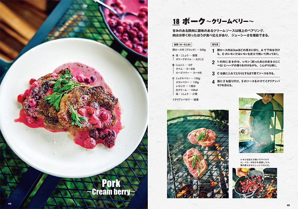 ▲速水さんおすすめメニュー:ポーク〜クリームベリー〜(『最高のキャンプ飯』P44-45掲載)