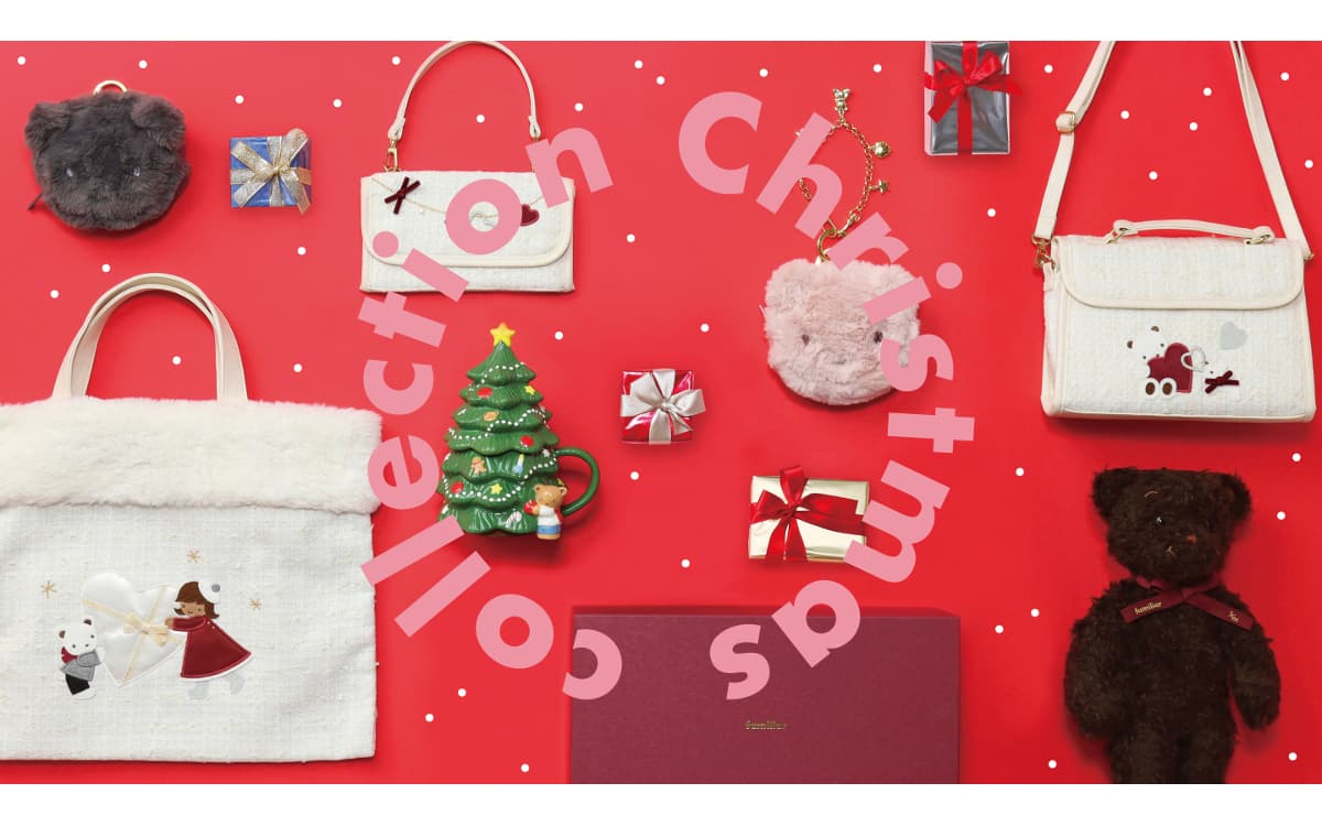 毎年オリジナルの生地を使用したアイテムを展開している、ファミリアのクリスマスコレクション。今年は「ホワイトクリスマス」をテーマに、ホワイトのオリジナルファンシーツイード生地やファー素材を使用したファッション小物をはじめ、クリスマスツリー型のマグカップなど、クリスマスを彩るアイテムを展開します。