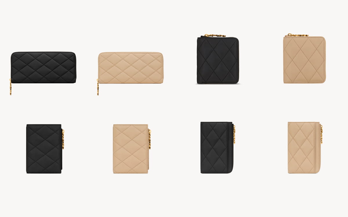 極上の柔らかさ、ベルベットのような肌触りを持つ上質なラムスキン「アニョー・リュクス・マトラッセ」にエレガントなダイヤモンドキルティングを施し、“YSL”のカサンドラロゴを象ったアイコニックなチャームを添えた「カサンドラビジュー」。キルティングのシャープな雰囲気と相反するソフトなディテールがサンローランの二面性「マスキュリン」「フェミニン」を表現しています。