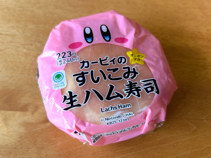 カービィが生ハム寿司を吸い込んでいる様子をイメージしている、遊び心満点の「カービィのすいこみ生ハム寿司」。パッケージから愛らしくてとってもかわいい~。カービィを象徴するゲーム内の要素があってファンにはたまらないと思います。