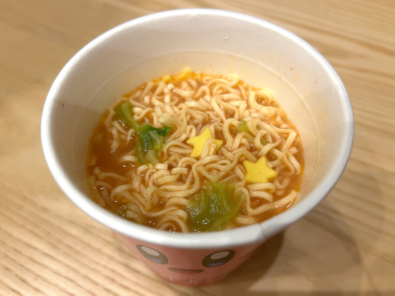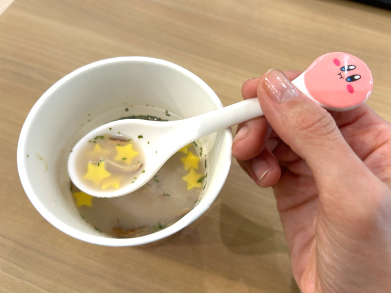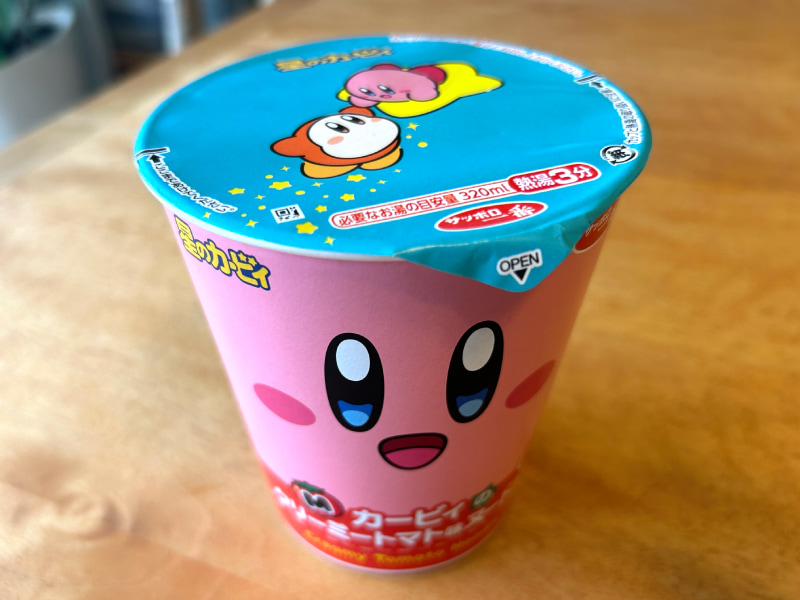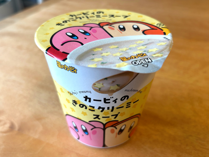 カービィの顔がどーんと印刷されているパッケージがかわいい。トマトとチキンがベースのクリーミーなスープがとってもおいしくてペロッと完食。まろやかなトマト味なので幅広い世代に人気が出そうな味♡