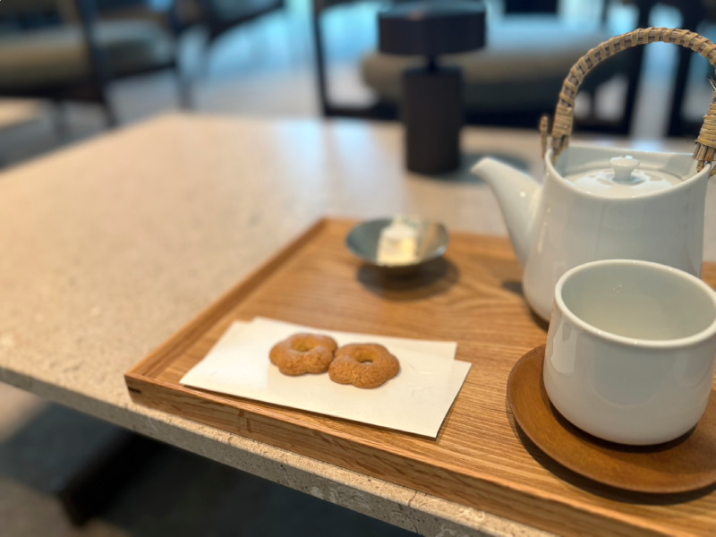 施術のあとは着替えて、カウンセリングを受けたラウンジでお茶とお菓子をいただきます。京都の蕎麦ぼうろ。ラウンジでは時間の制限がなく、自分のペースでしばらく寛いでOKだそう。