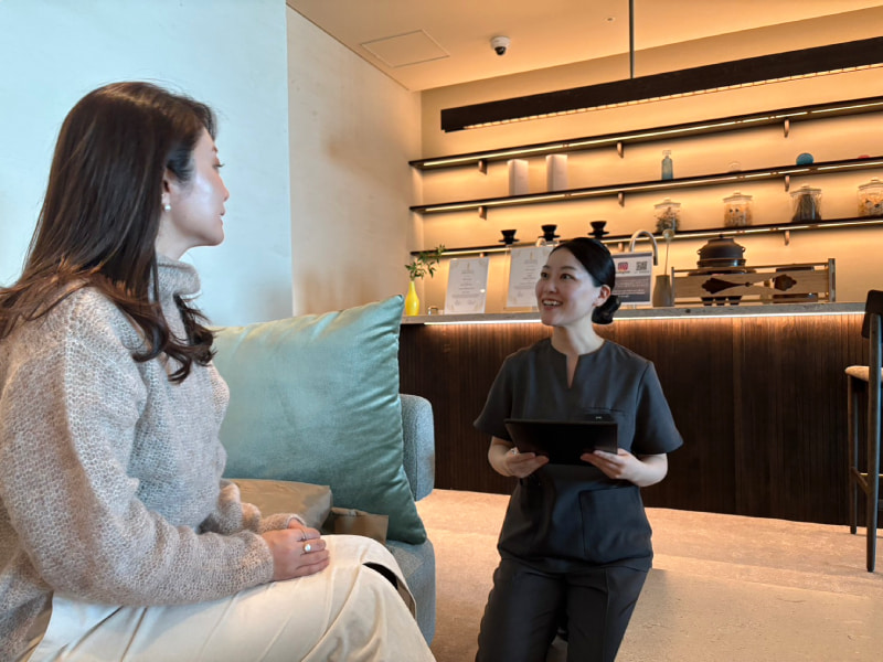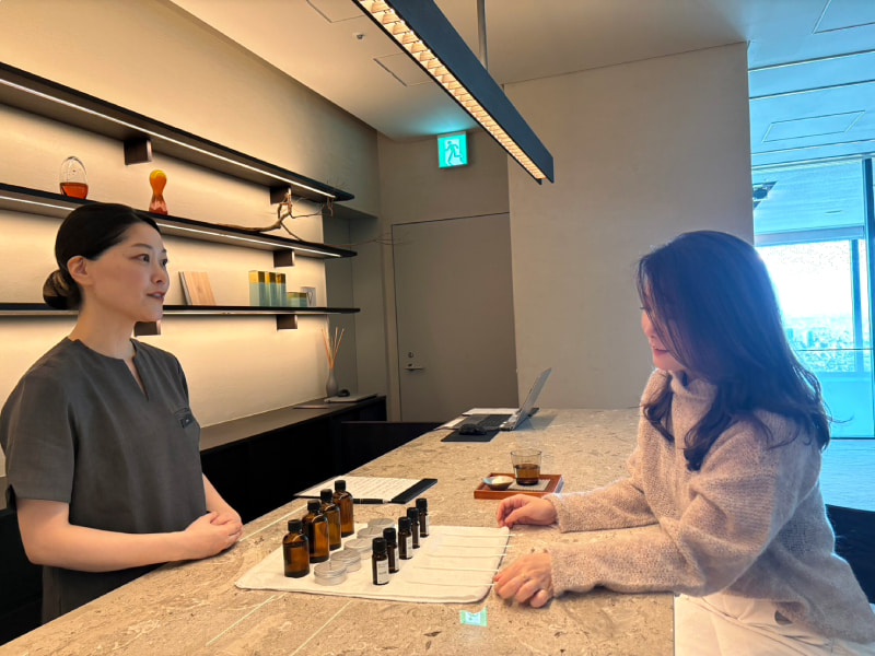 カウンセリングシートに基づいて、担当してくださるセラピストさんが色々と聞いてくれます。親しみやすくて洗練されたセラピストさん♡ さすがホテルスパという感じ。