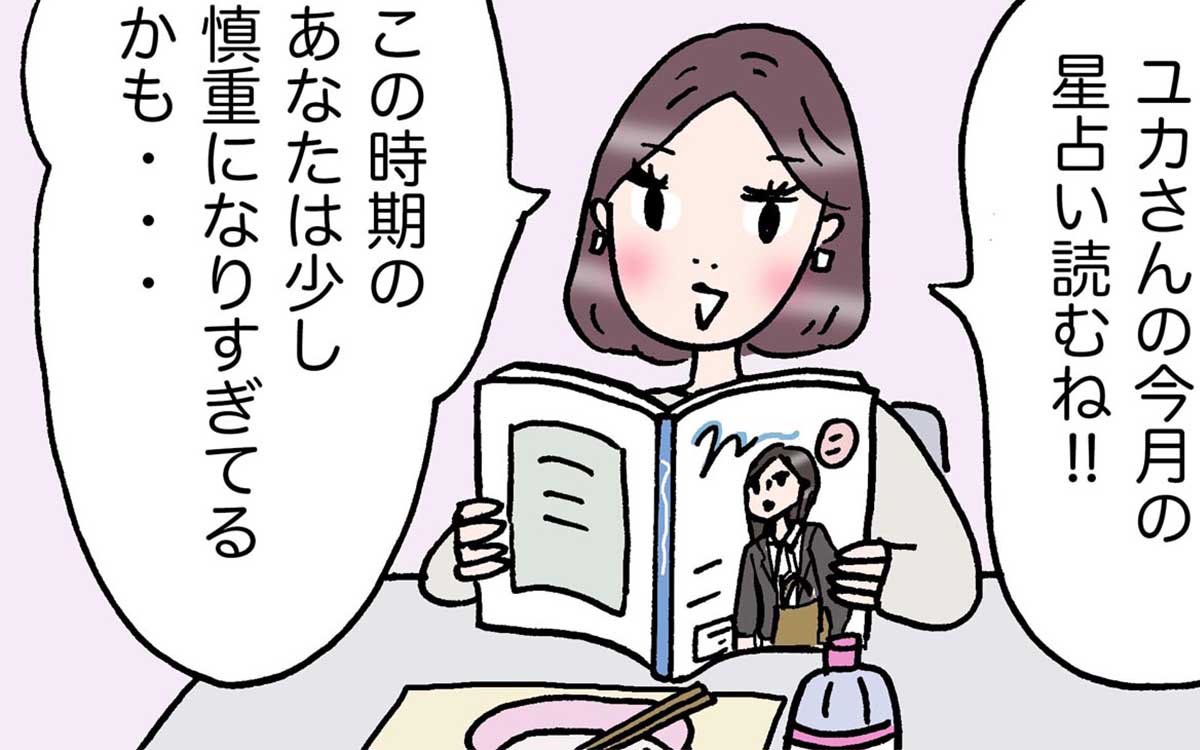 働く女性の“あるあるネタ”を4コマ漫画でお届け。人気イラストレーター・村澤綾香さんによる描き下ろしの毎週土日月の連載です。 今回のお話は、「星占い」にまつわる話。