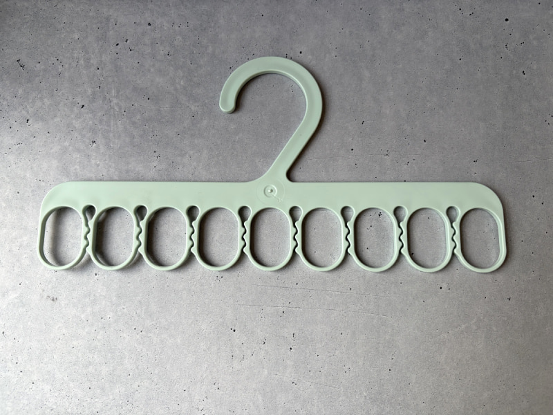一見シンプルな輪っか状のデザインが目を引くイケアの「フレキシブルハンガー」。やわらかな素材とナチュラルな色味、洗濯グッズとは思えないすっきりとした見た目も魅力の一つです。