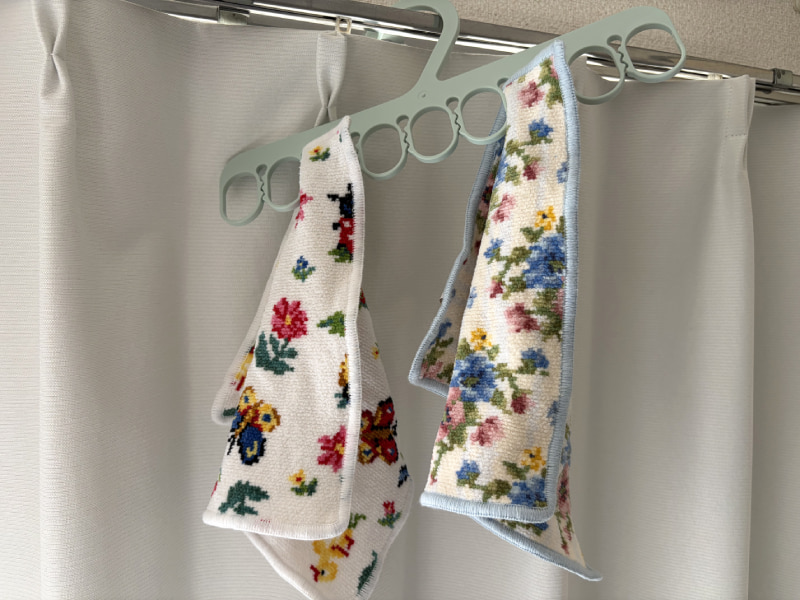 薄くてかさばらないから、旅行に持っていくのにもぴったり! 旅先で洗面所やバスルームのタオル掛けに引っかけて使えば、サッと乾かせてとっても便利。スーツケースや鞄の隙間にも収まるので「とりあえず入れておこう」と思える頼もしさがあります♡