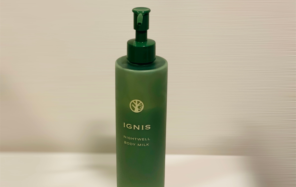 最近発売されたばかりのイグニス ナイトウェルボディミルク 240ml¥4,400(税込)です。イグニスのアイテムは香りがとってもよくて癒されるものばかりなので、毎回新作アイテムがでるたびチェックしているのですが、特にこのボディミルクはお試しで1度使ったら、あまりの香りのよさに虜になってしまいました。