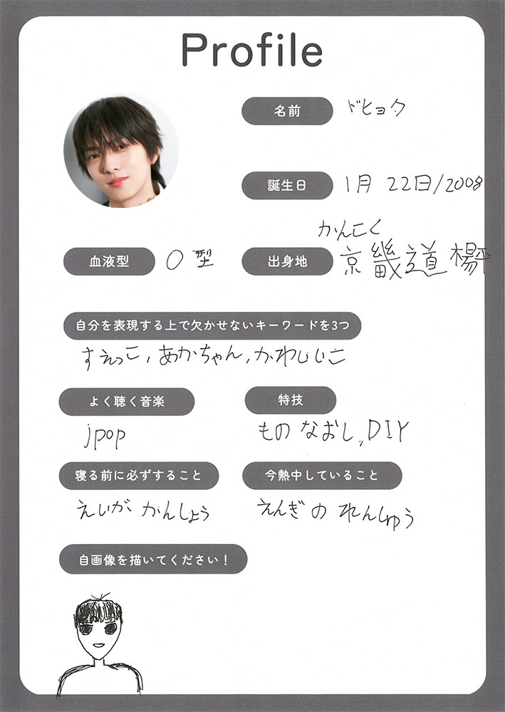 ドヒョク:17歳。韓国出身。チャームポイント:きれいな目