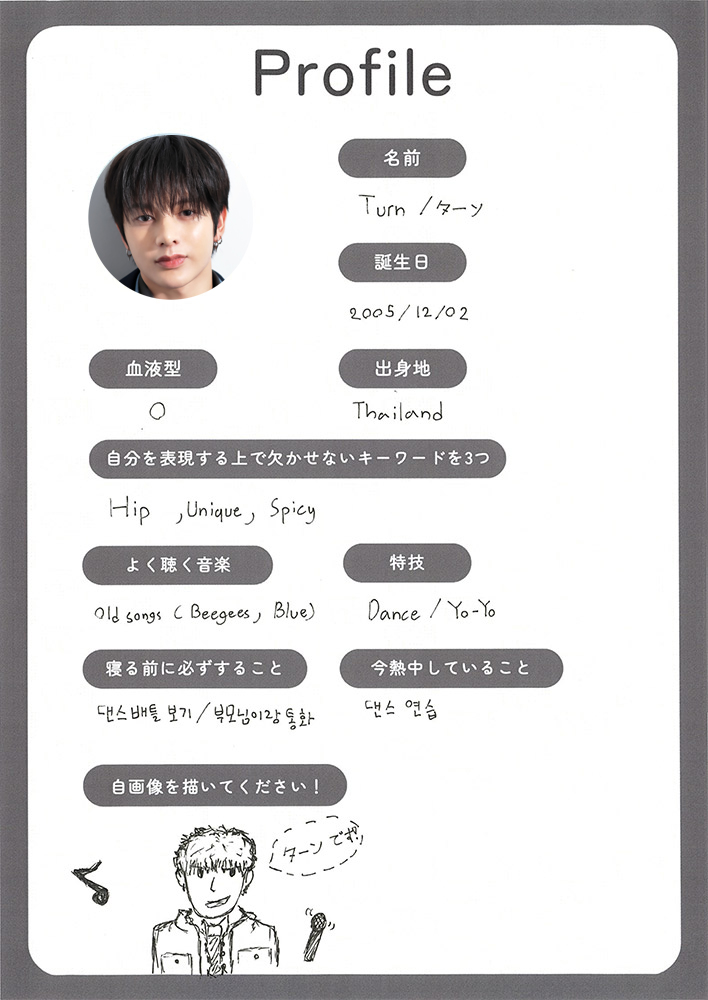 ターン:19歳。タイ出身。チャームポイント:低い声