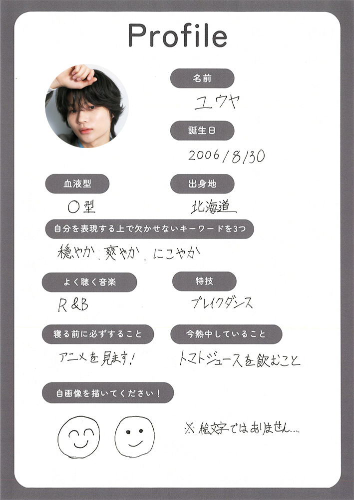 ユウヤ:メンバーになることが決まった時、すごくうれしくて、隣に社長さんがいらしたんですが(社長の)話していることが全く耳に入らず、自分が大きなステージに立ってパフォーマンスをする想像をずっとしていました。僕は過去に何回かオーディションを受けたことがあって、緊張はさほどなかったのですが、韓国語での自己紹介は緊張してしまって、自分でも何を言っているかわからない状態でした(笑)。