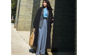 ダウン[共布ベルト付き]¥214,500(タトラス 銀座店〈タトラス〉) ニット¥52,800(ショールーム セッション〈SAYAKA DAVIS〉) 〝アダム エ ロペ〟のシャツ¥26,950・〝エモエレ〟のパンツ[共布ベルト付き]¥39,600(アダム エ ロペ) バッグ¥218,900(TOMORROWLAND〈MICHINO PARIS〉) ピアス¥17,600(エルディスト ショールーム〈ジャミレイ〉)