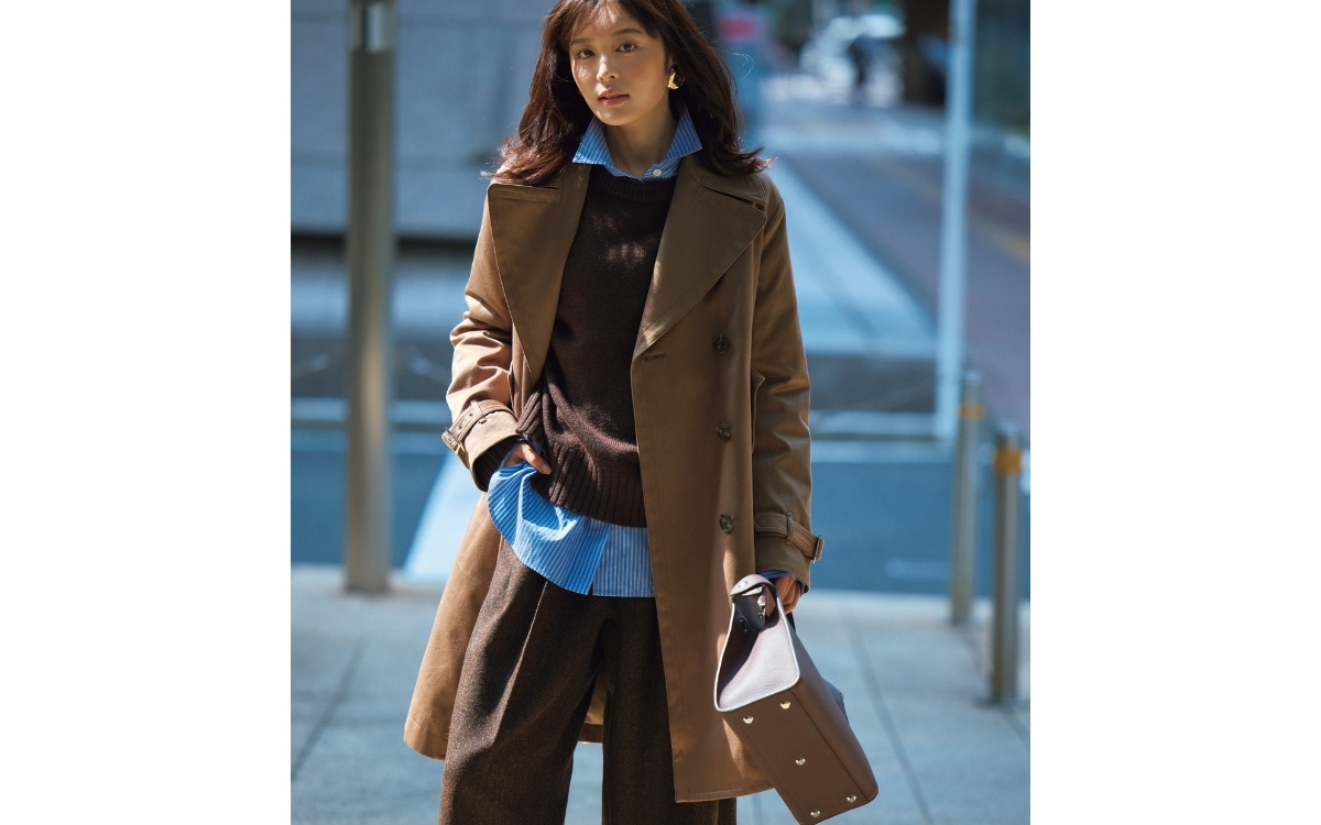 一見オーセンティックなトレンチコートに見えて、内側のダウンで暖かくてふっくら、抜群の着心地。もともと身幅があるので、ダウンが仕込まれているようには感じない絶妙なサイジングもお見事。輪郭をはっきり出してくれるので、〝ダウンでキリっとかっこいい〟が簡単に叶う。