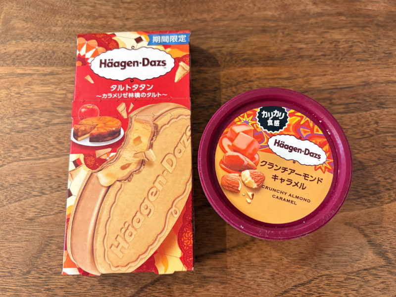 【ハーゲンダッツ】クリスピーサンド「タルトタタン」&ミニカップ「アーモンドキャラメル」