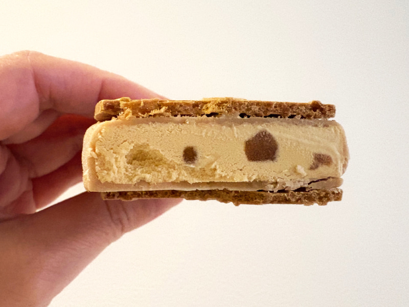 カリッとしたアーモンドの食感が天才的。アイスの中に入っているアーモンドは「飴掛け+ホワイトチョココーティング」の〝ダブルコーティング仕上げ〟。これが本当にカリカリで、噛むたびにアーモンドの香ばしさが広がり、最高のアクセントに。