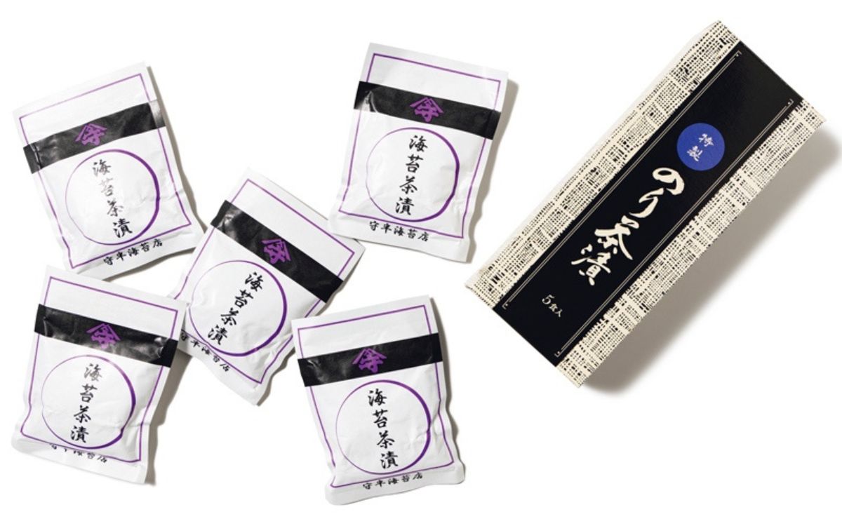 特にお気に入りのお茶漬けは『守半海苔店』の〝特製のり茶漬〟。老舗の海苔専門店ならではの上質な味わいで、海苔の香りも格別。袋から出す際に、袋から落ちてこないほどぎゅうぎゅうに詰められた海苔が贅沢♡