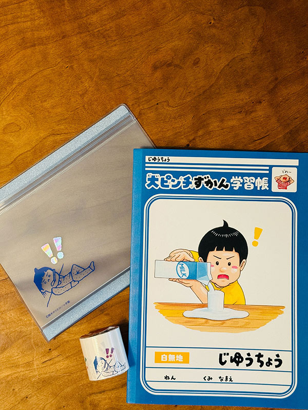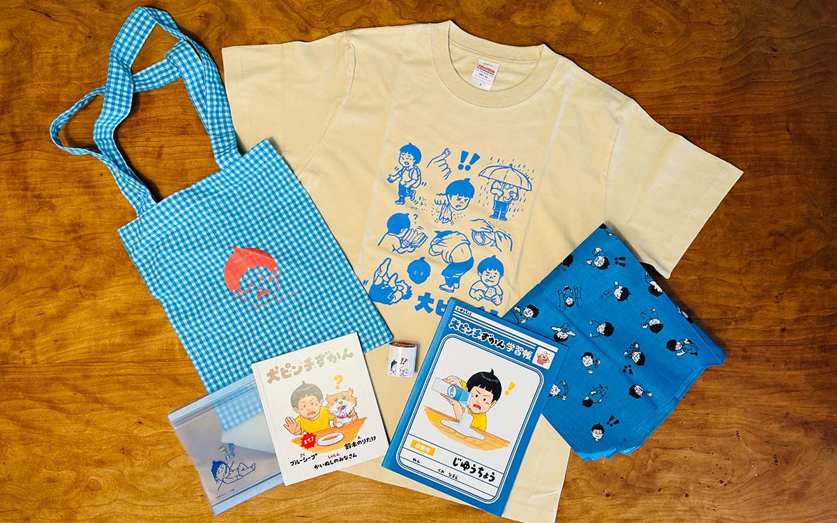そこには鈴木のりたけ先生のかわいいイラストを使ったTシャツ、エコバッグ、ハンカチ、ノート、付箋、クリアファイルなどのグッズがズラリ!!