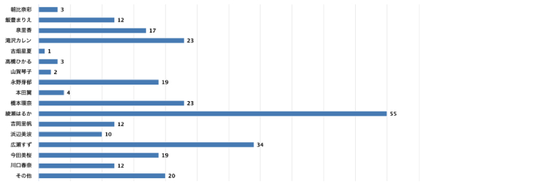 「40代や50代になった姿も見てみたいと思う有名人を理由と共に教えて!」という問いに集まった票数をグラフで見ると、このようになりました。