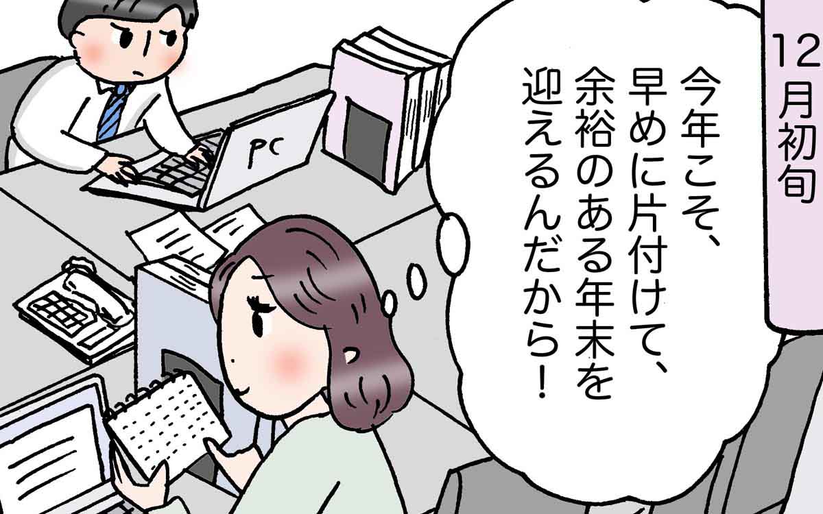 【働く女性あるある4コマ漫画 − 余裕のある年末】