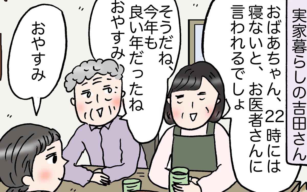 実家暮らしの吉田さん。みんなで大晦日を満喫し、いつも通り22時前に早寝!