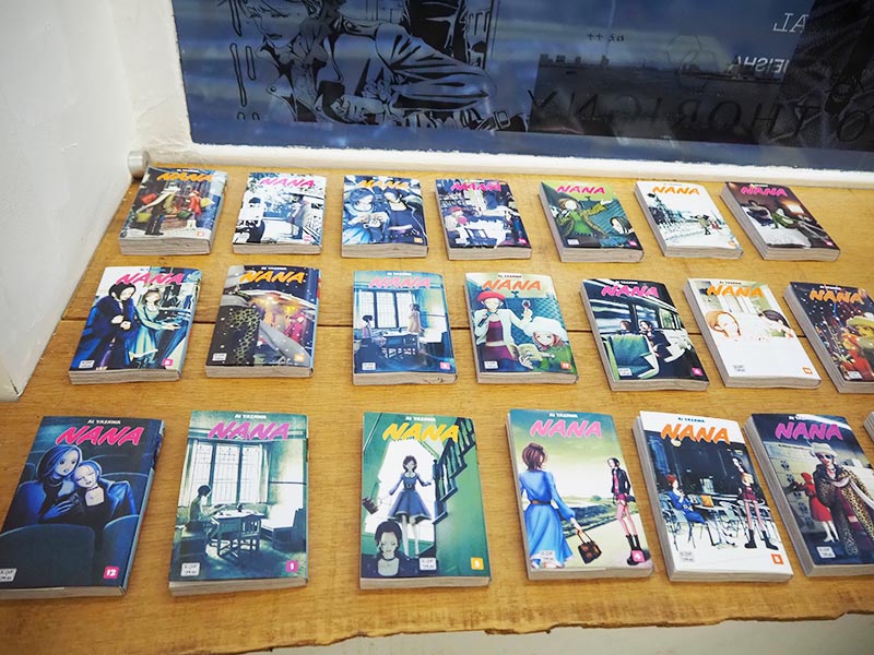 フランス語バージョンのNANAも会場に展示されました。NANAは夢を抱えて前進し続ける女性を描きながら、パンクファッションやバンドカルチャーを巻き込み、日本だけでなく世界中の女性の生き方やファッションに影響を与えた作品です。