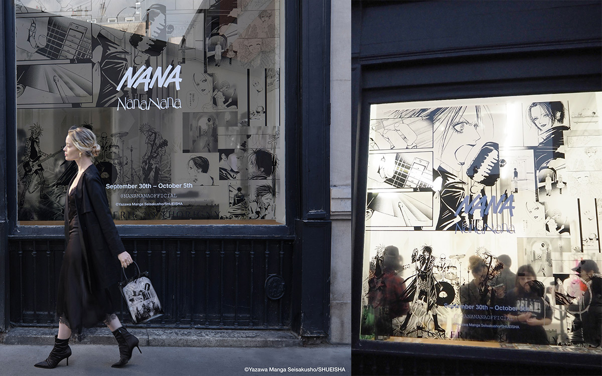 パリのイベントでは、ウィンドーをNANAが大胆に彩って