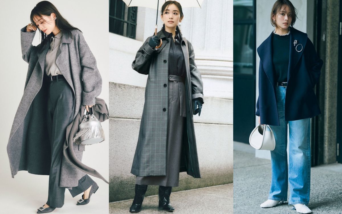 濃色コートは、中を淡色のワントーンにして軽やかにトーンアップ。