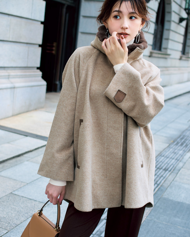 4位は、ゆるやかなAラインシルエットが魅力のショート丈コートのコーディネート。スカートにもパンツにも合わせやすく「似合わない人がいない!」と熱い支持を集める名品。顔まわりを華やかに見せてくれるレッキスラビットファーの襟は、ふわふわの質感と温もりに包まれて、冬もマフラー要らず! 読者からは「こなれ感がある」「ウールコートが素敵」「コートがとてもかわいい」「大人っぽさとかわいさがあって品よく見える」といった声が集まりました。