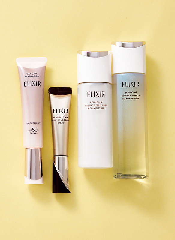 松浦:はい。こちらはシワを改善する〝純粋レチノール〟に加え、シワ部分のハリ不足や乾燥に着目し、新配合しました。全アイテムが〝つや玉肌〟を目指せる設計なのもエリクシールらしさです。頬の高い位置に宿る〝つや玉〟は、言わばハリ・透明感・潤いで満たされた肌の〝サイン〟。