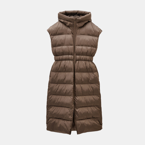デザイン性と機能性を兼ね備えた中綿入りロングベスト