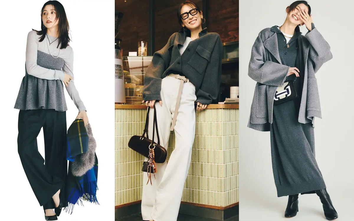グレーの知的な持ち味を活かして、トレンドアイテムにも難なくトライ