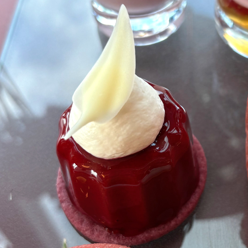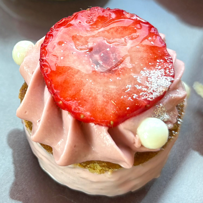 スーパーフードのオーガニックアサイーを使った爽やかヨーグルトに、バラ香るゼリーを重ねたいちご入りの二層仕立て。軽やかで、後味にふわりと残るいちごの香りが、アフタヌーンティー全体の流れをきれいに整えてくれます。