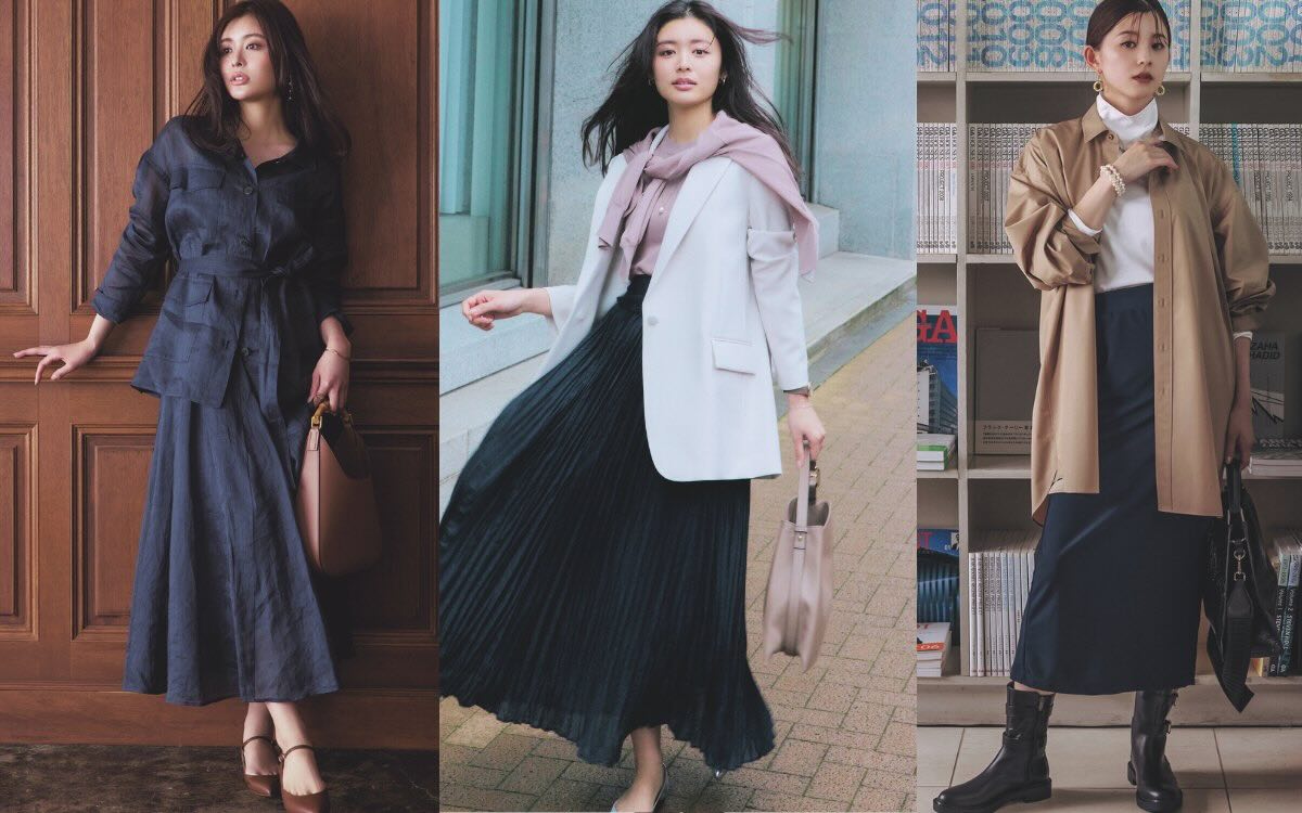 ネイビー・カーキ・ブラウンの「タイトスカート」で季節を先取り! 夏から秋まで活躍♡