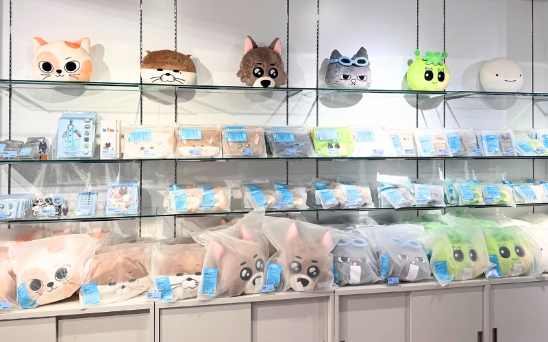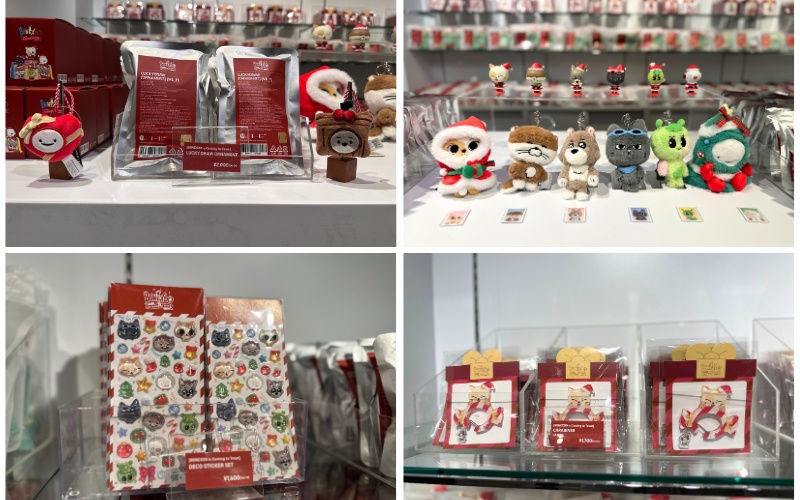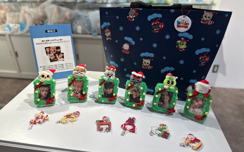 店内には『BOYNEXTDOOR “BBNEXDO is Coming to Town” OFFICIAL MERCHANDISE』が並び、思わず手に取ってしまうアイテムばかり。中でも注目なのはコスチューム!PLUSH KEYRINGに着せると可愛く変身します(下の写真右上)。シール帳ブームにぴったりなDECO STICKER SETも。
