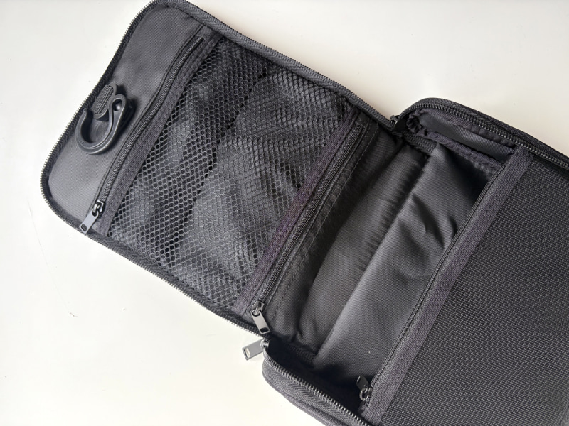ボトル類・チューブ・細かいアイテムを分けて収納できる構造で、ごちゃつきやすい洗面用品も迷子になりません。「とりあえず全部入れる」ではなく、“使う順・種類ごとに整理できる”のがこのケースの強みです◎。