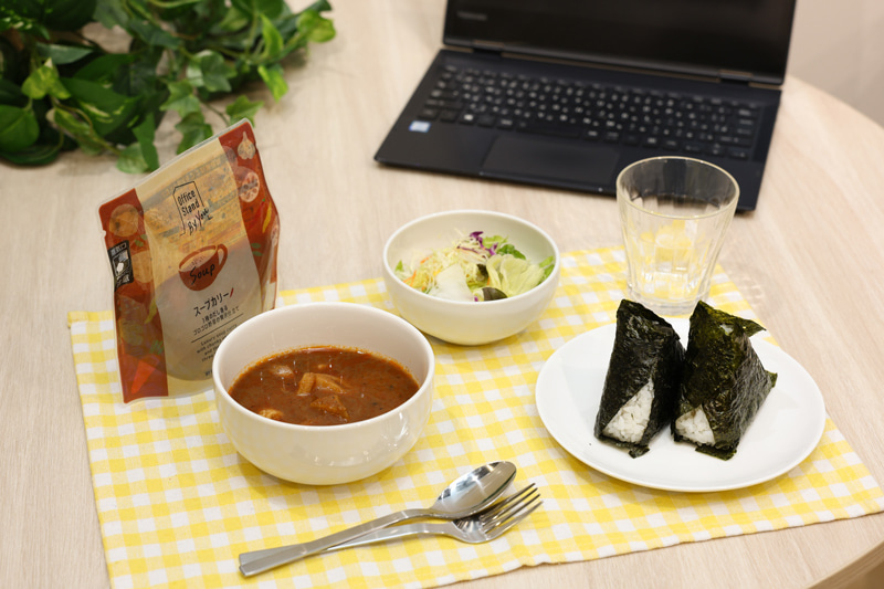スープだけで軽めにすませたり、パンやおにぎりを合わせてしっかり食べたり。その日の気分や体調に合わせて選べるラインアップは「常設」だからこそ叶う自由度。忙しさの合間に生まれるその小さな余白が、午後の仕事の集中力を支えてくれるのかもしれません。