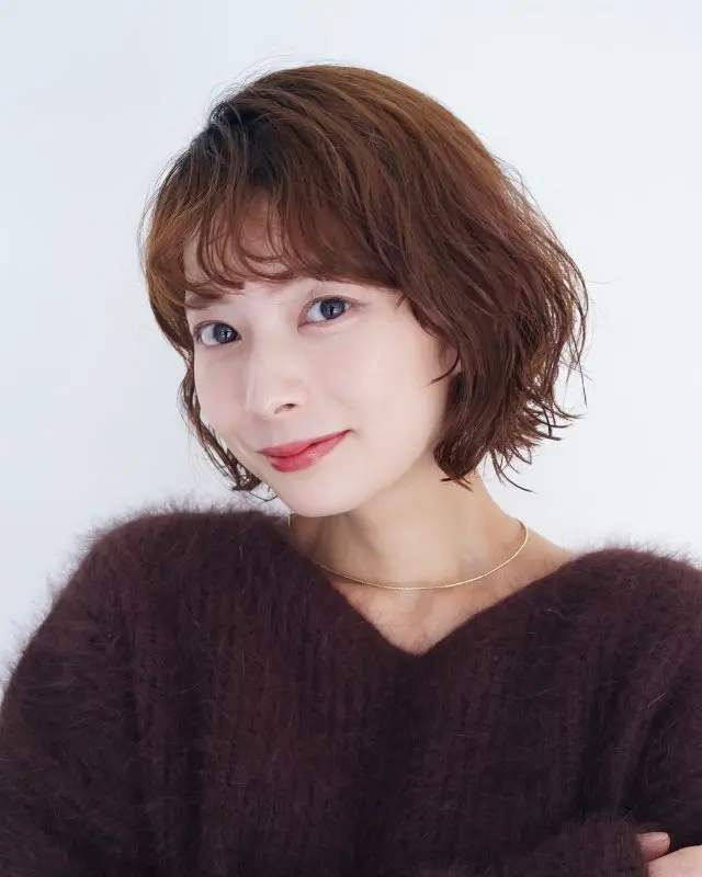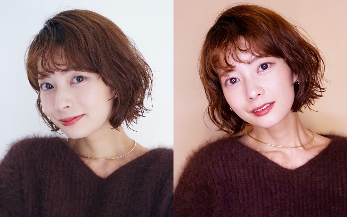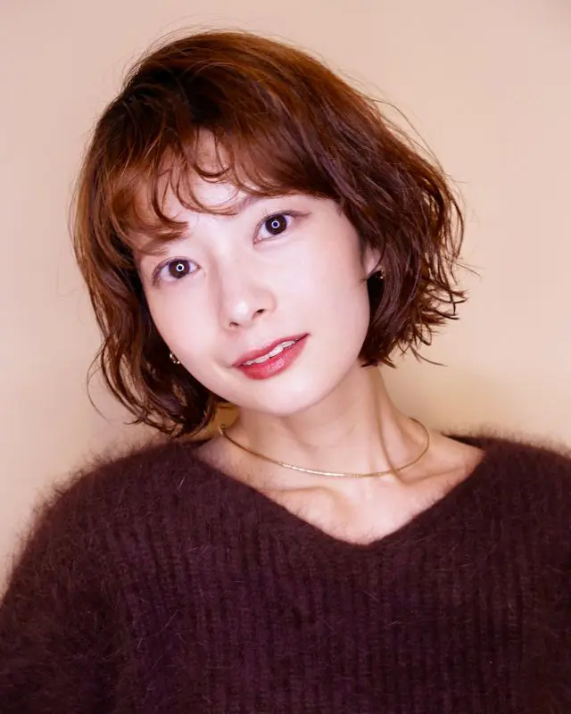 くしゅっとしたゆるふわパーマがかわいいこちらのボブ。ボブらしさを楽しみつつ、パーマを活かすレイヤーを入れることでメリハリのあるランダムな動きを実現。細身な輪郭やシャープなフェイスラインを緩和して、柔らかく女性らしいシルエットに。また、大人のパーマスタイルには暖色系カラーを合わせてツヤ感をプラスして。