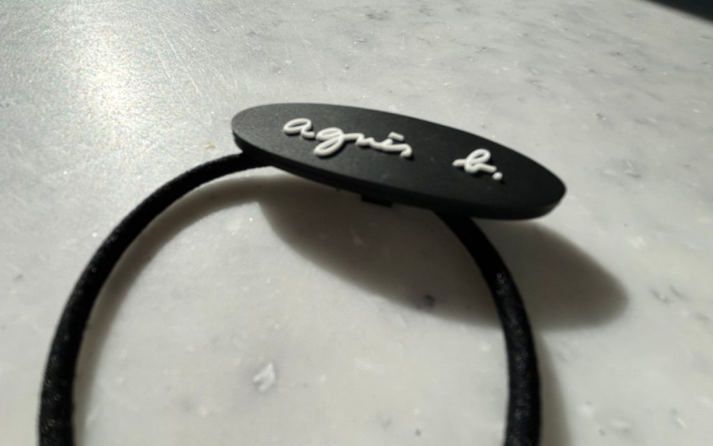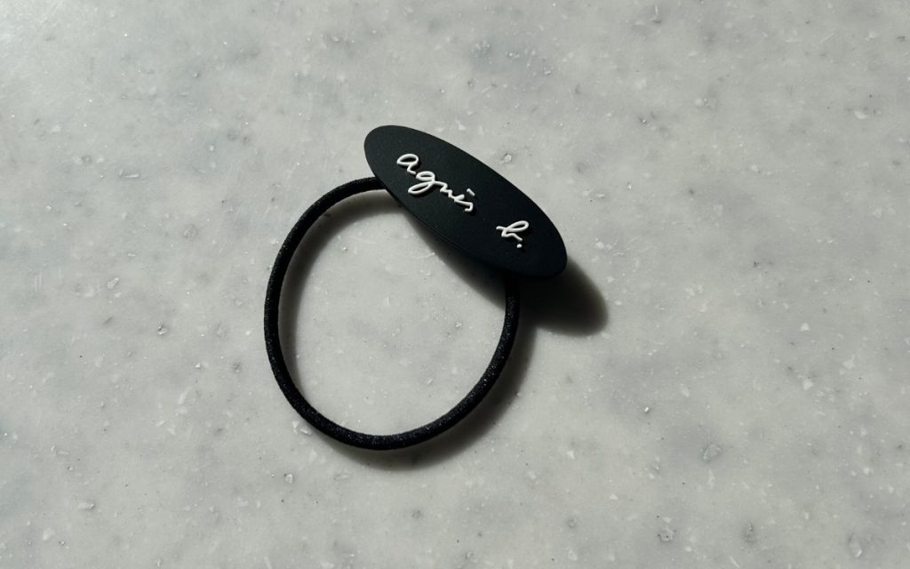 アニエスベーのロゴがプリントされた楕円系のプレートにゴムが付いてた、ごくごくシンプルなヘアゴム。プレートは