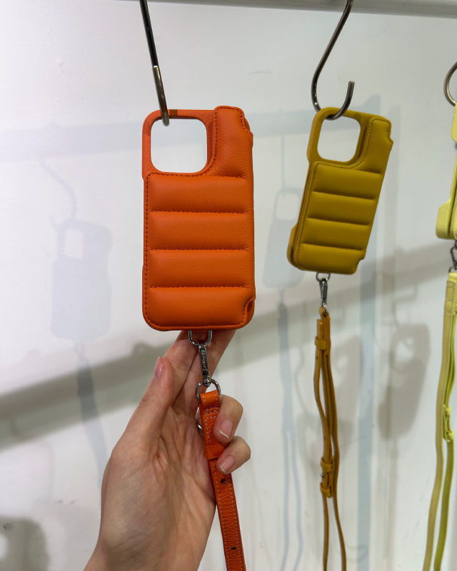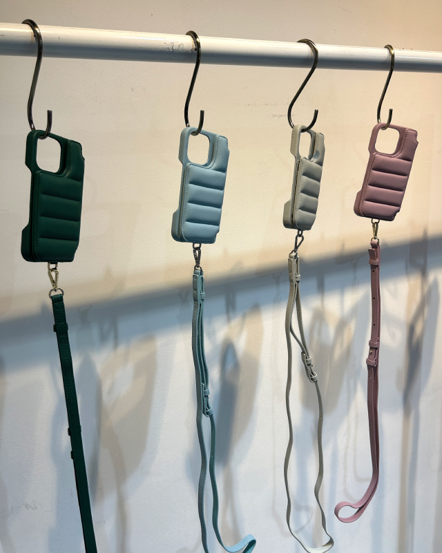ストラップ対応のデザインなので、肩にかけられて手ぶらで出かけられるのも◎。スーツスタイルやきれいめコーデにも馴染むスマホケースだと思います。オフィス内を移動する時も便利ですね^^