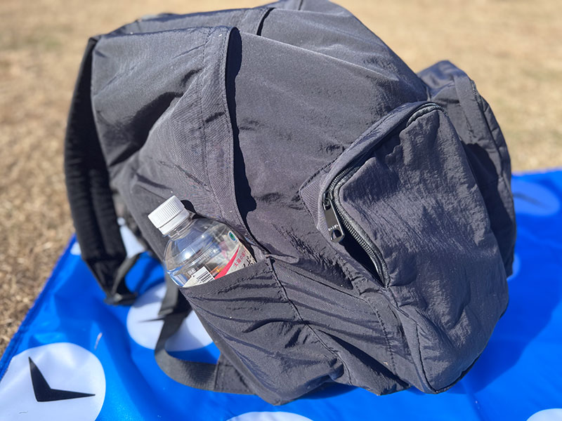 外側にドリンクホルダーがあるのって重要じゃないですか? バックパックで移動するときは、大荷物なことが多いので、外側にあるのが意外と大事なのです。