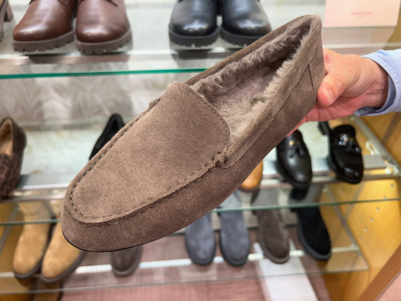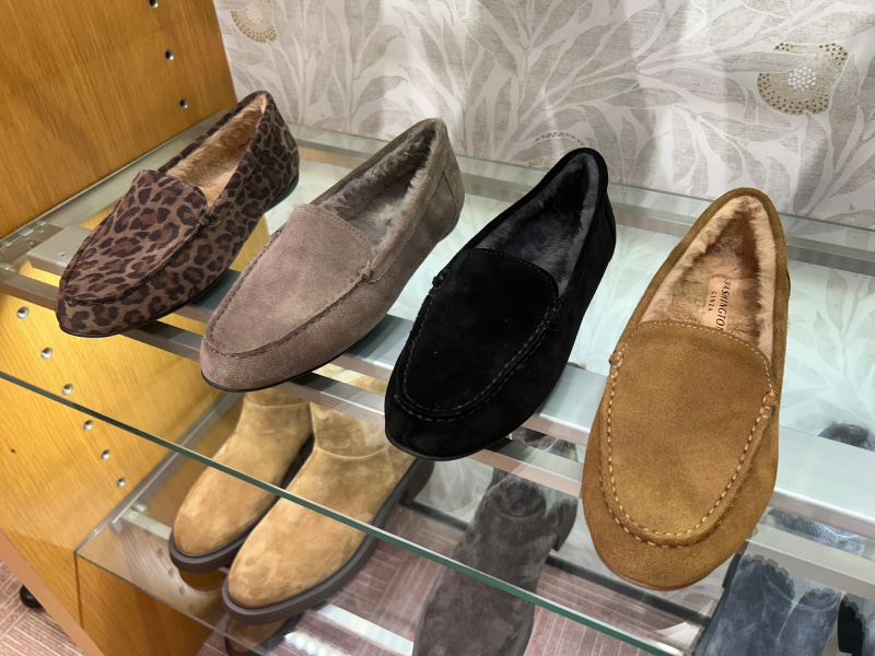 この冬は、銀座ワシントンでボアモカシンを購入! つま先まで温かくて通勤にもぴったり。やわらかな牛革ベロアを使用していて、外反母趾の私でも心地よく歩ける履き心地なボアモカシン。スッキリとしたシルエットなので、通勤から休日まで幅広く使える名品です。内側のふわふわしたボアの触り心地が気持ちいい♡