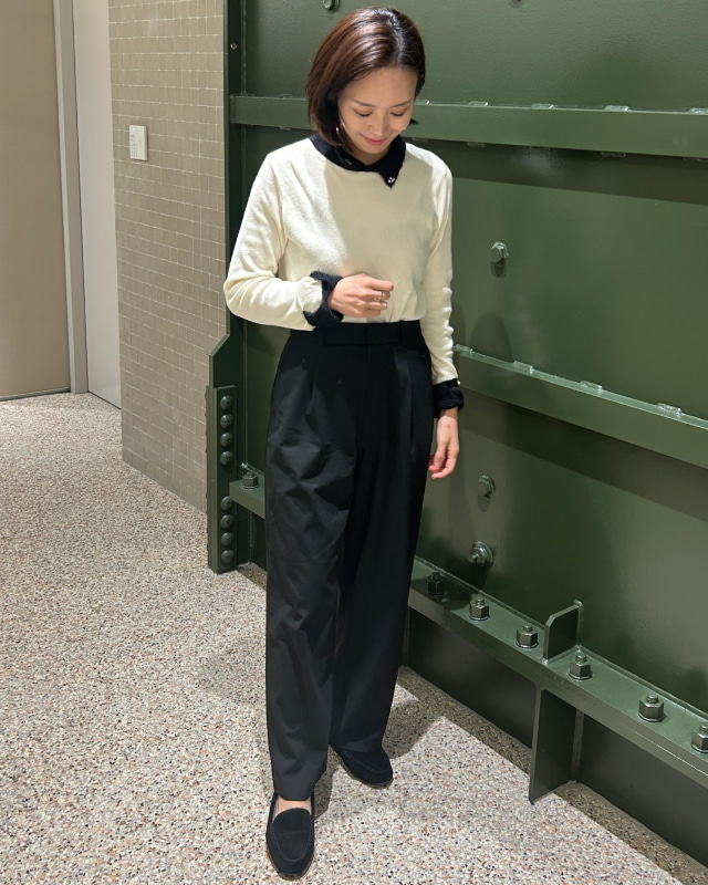 ワイドパンツにボアモカシンを合わせると上品でリラックス感のあるコーデに。年末旅行のときもボアモカシンを履きましたが、長時間歩いても疲れにくく歩きやすかったです。