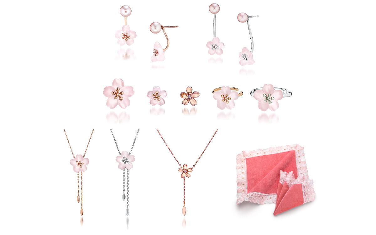 春の訪れを告げる限定ジュエリー「SAKURA 2026」は、柔らかな桜色のパールと、オリジナルカットで繊細に仕上げたフロストローズクォーツの花びらで桜を象った、可憐さと上品な華やかさを醸し出すピアス、イヤーカフ、ネックレス。