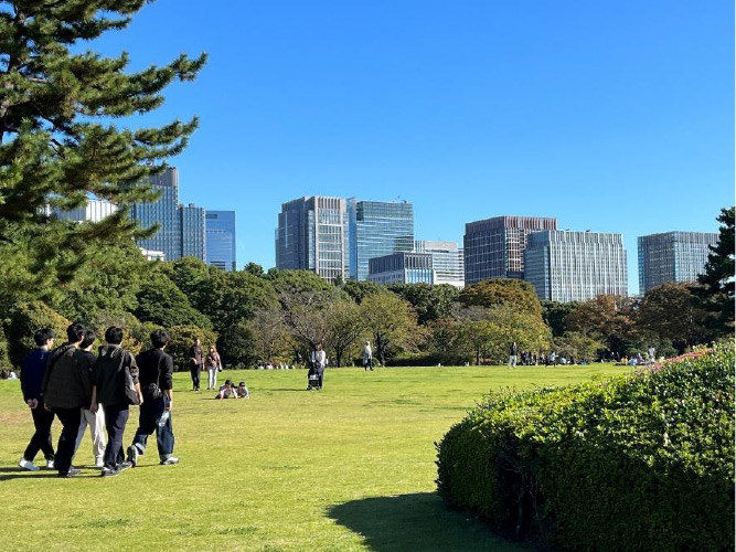 皇居というとなんとなく敷居が高いように感じてしまうけれど、東御苑は開園時間中であれば、気軽に散策可能な都会のオアシス。2025年には開園から入園者が4000万人に到達し、海外からの訪問者も多く見かけます。