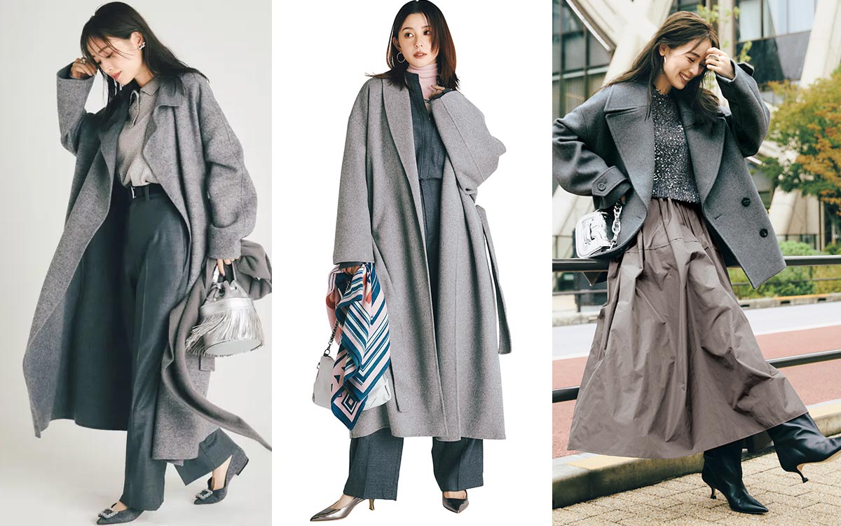 知的でクールな印象のグレーコート。黒よりもやわらかい雰囲気を漂わせてくれますが、なんとなく地味に見える…と思う人もいるかもしれません。グレーコートの地味見えを回避し、大人っぽくおしゃれにするコーディネートのコツを紹介します。