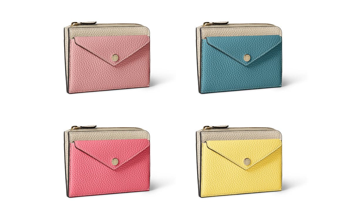 ▲(左上から時計回りに)エンベロープ ミニジップ ウォレット シュリンクレザー¥48,400