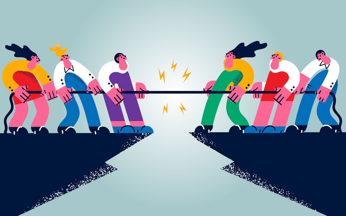 「せめぎ合う」は、力が拮抗したり、意見や立場が対立したりする場面などで活用できます。