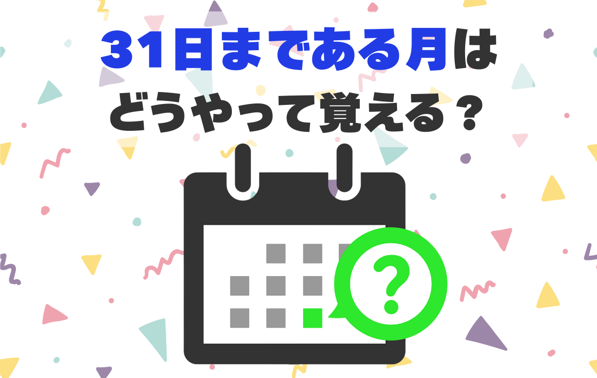 思い出そうとすると、意外と考えてしまう「31日まである月」。今回は、簡単に覚える方法を2パターン紹介します。さまざまな場面で役に立つため、ぜひ覚えておくとよいでしょう。