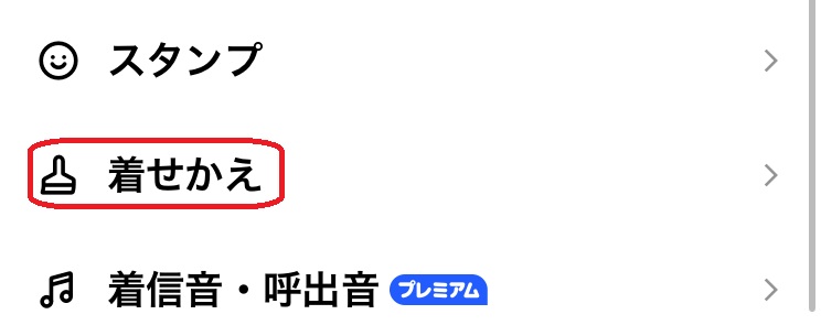 次に「着せかえ」をタップします。